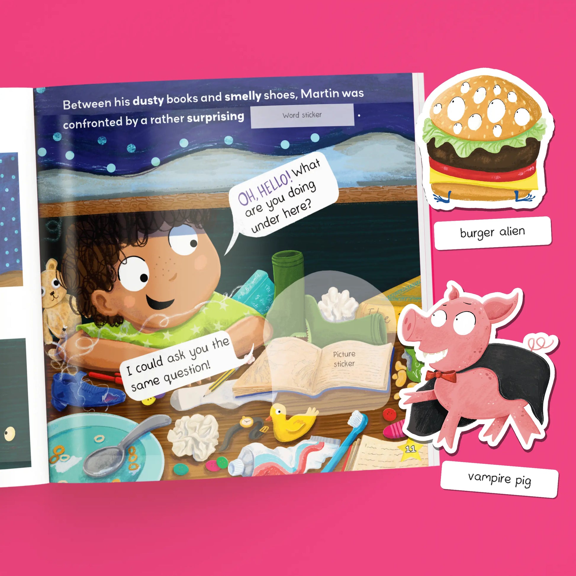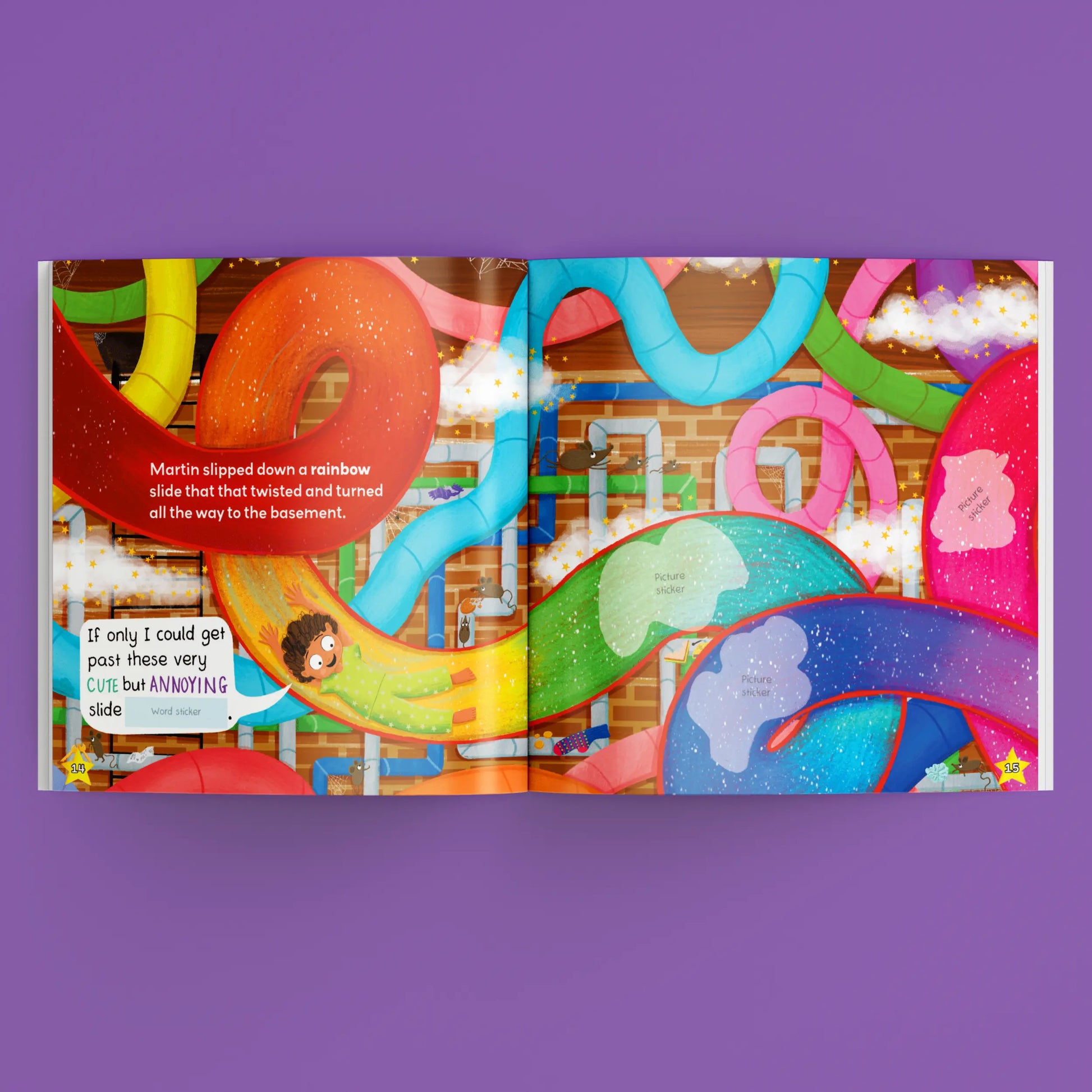 Introducing Stickery Stories: Martin and the Mysterious Thingamabobs, the first book in the boredom-busting Stickery Stories series.